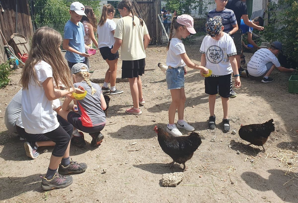 Die Kinder besuchen unsere zutraulichen Hühner. Dort dürfen die Schüler mit den gefiederten Tieren auf Tuchfühlung gehen und bei der Fütterung helfen. Schnell finden wir heraus, was ein Huhn braucht, um sich wohl zu fühlen. Fächerübergreifend und anschaulich erarbeiten wir, wie wir durch unser Verbraucherverhalten artgerechte Tierhaltung fördern und unsere Lebensmittel wieder mehr wertschätzen.